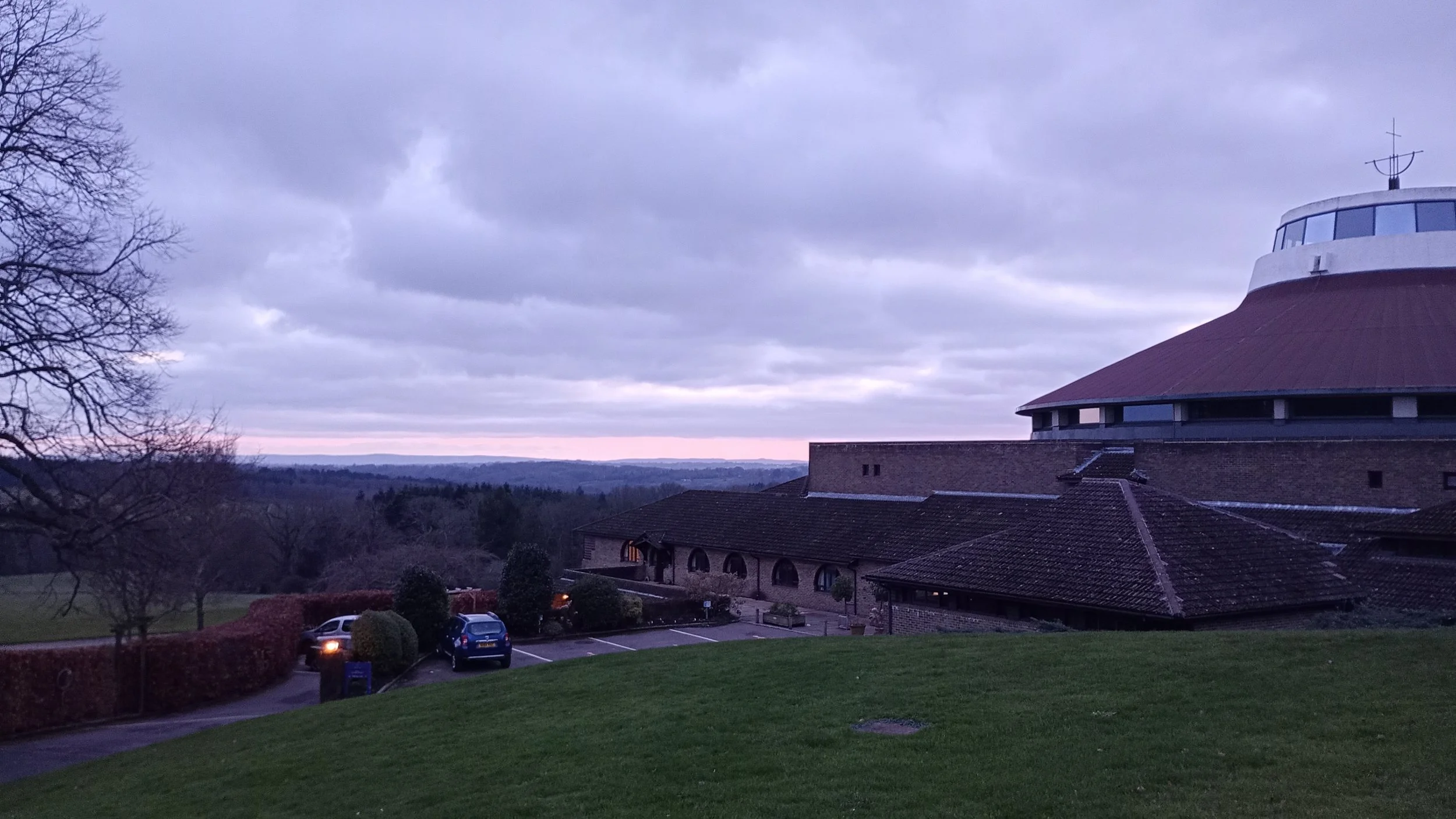 Like many of the monastic houses I’ve visited over the years, Worth is in a beautiful location. It sits on the crest of a hill from which one can look down over a panoramic view of the Sussex High Weald and, on a clear day, all the way to the South Downs. It wasn’t a clear day when I arrived. It was in the midst of the Arctic snap that had gripped Britain at the start of January and it was cloudy, and raining to boot. No matter; it was a good excuse to hunker down in my monastic cell and catch up on some reading. And even if in the surrounding woods it was either very icy or very muddy according to the temperature, I managed to get out for some bracing walks. I also enjoyed being in the vast, wonderful, circular shaped Abbey church and being immersed in the lovely plainchant singing of the monks. And then there were the meals. The Benedictines like good food, as do I, and particular treats for me on this visit was breakfast coffee in bowls, French style, and ‘real’ honey from the comb to put on the tasty, wholemeal bread. Also, eating in silence, with a monk reading aloud from a book, always gives the opportunity to really savour the taste and sight and smell of the food.