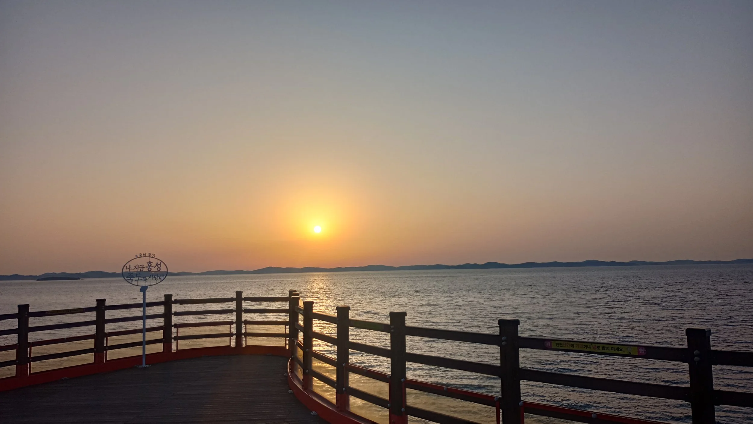 Our final trip was to the West Coast to see our friend, Sook Young. I’d told her that in Seoraksan the week before, I’d had a sudden urge one evening to eat chicken and chips but that the fried chicken restaurant we’d gone to had served us a pot of spicy chicken instead. Sook Young drove us to the sea, picking up food on the way, and we sat on the end of a pier watching the sun go down, eating fried chicken and chips and drinking beer.